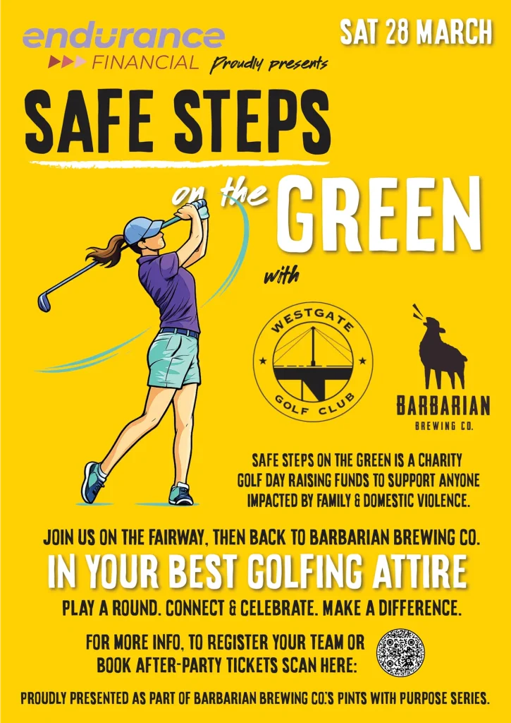 Safe Steps on the Green is a charity golf day and community after-party raising critical funds for Safe Steps Family Violence Response Centre, supporting anyone escaping family violence across Victoria.